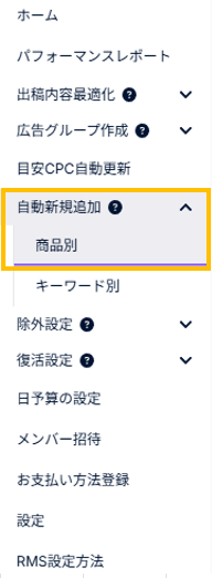 自動で商品CPCの新規追加を行ってくれる機能について、使用方法を説明していきます。
