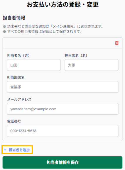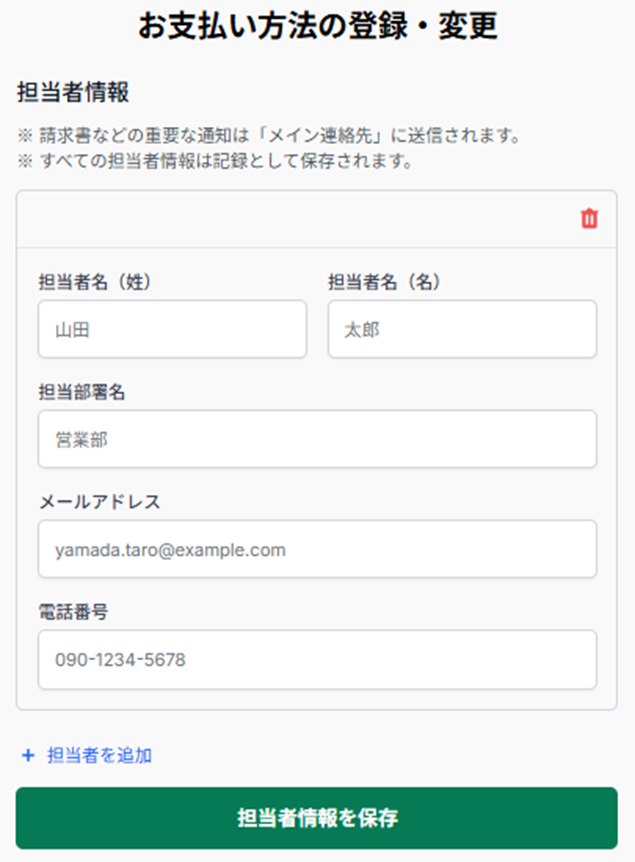 ご請求書をご確認いただく方のご連絡先の登録をお願いいたします。