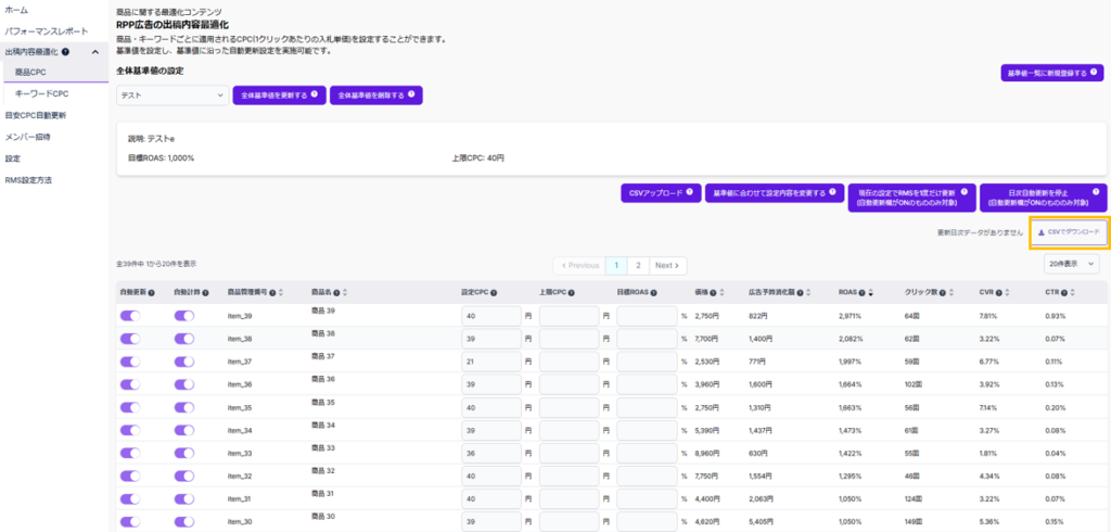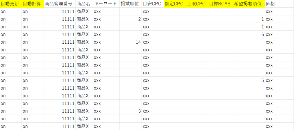 出稿内容最適化(商品CPC・キーワードCPC)ーCSVによる一括編集方法