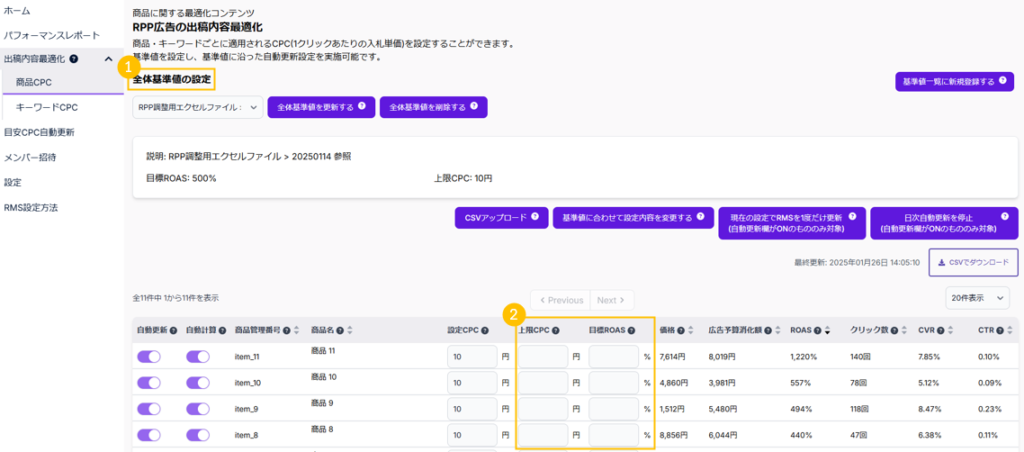 しかし、上限CPC、目標ROASを片方しか登録していない場合、登録していない基準については、全体基準値が適用されます。